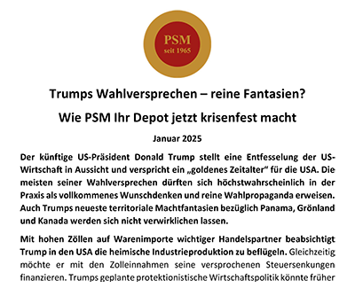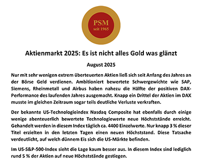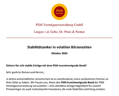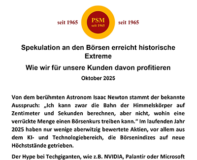 Seit fast 60 Jahren navigiert PSM durch unterschiedlichste Marktphasen. Diese lange, gelebte Börsenerfahrung schafft ein Sicherheitsempfinden, das nur Zeit hervorbringen kann – und verantwortungsvolle Entscheidungen maßgeblich prägt.